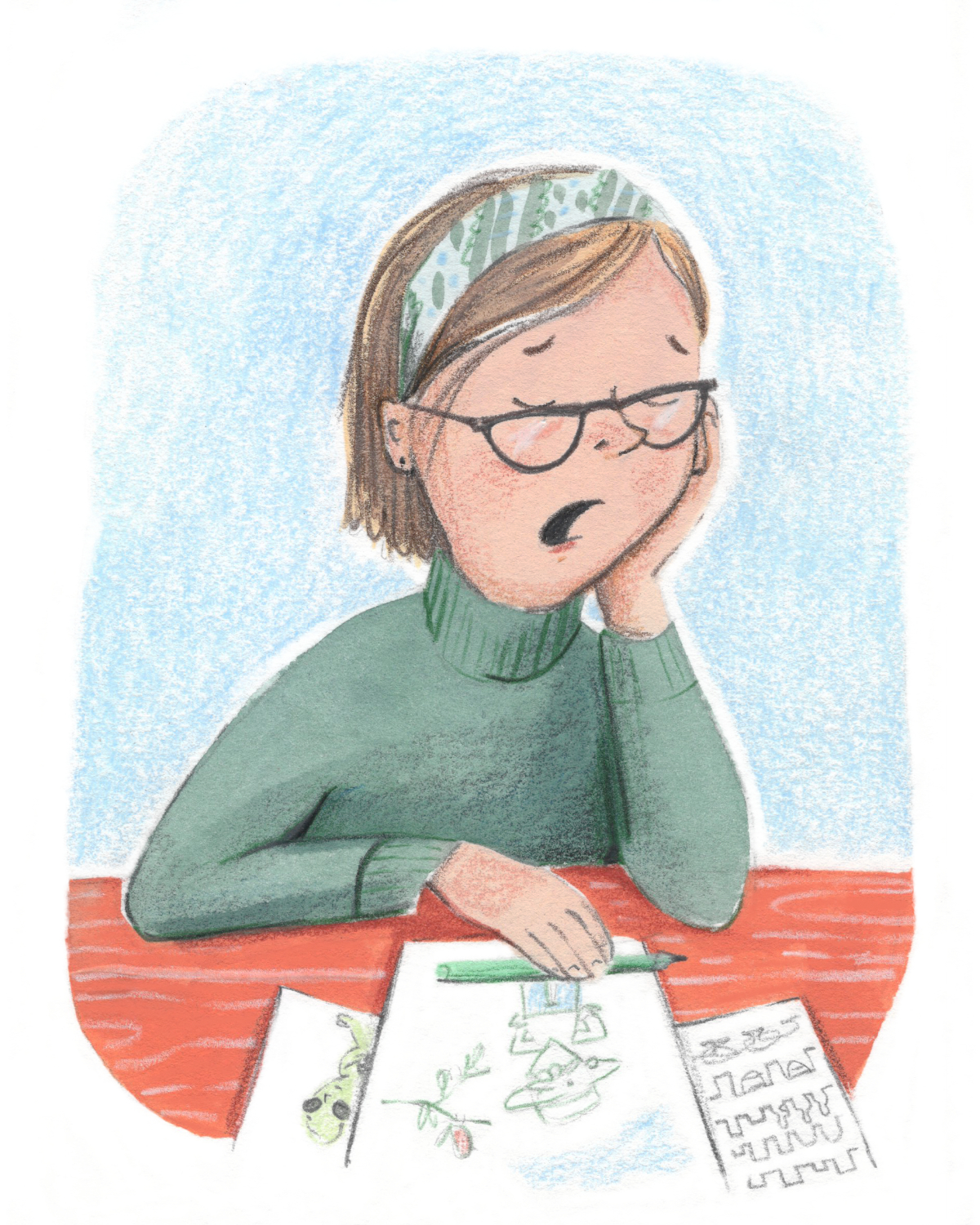 Making people laugh is my favorite thing ever. So, playful colors, simple lines, and a good joke influence me most when I tell stories. My first picture book, which I wrote and illustrated, is coming out in October 2025 with Magination Press!